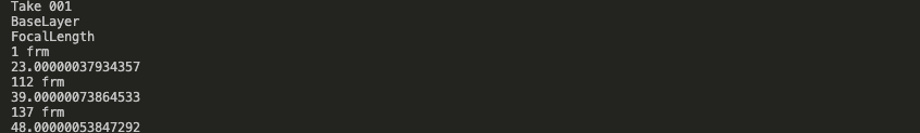 てか、なんで C4D で読み込んでも焦点距離にキーフレームが付いていないんだろう、、、